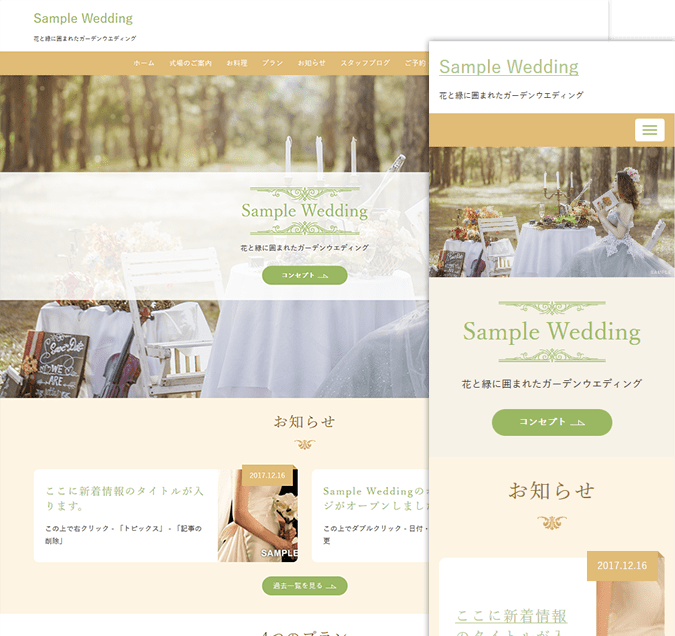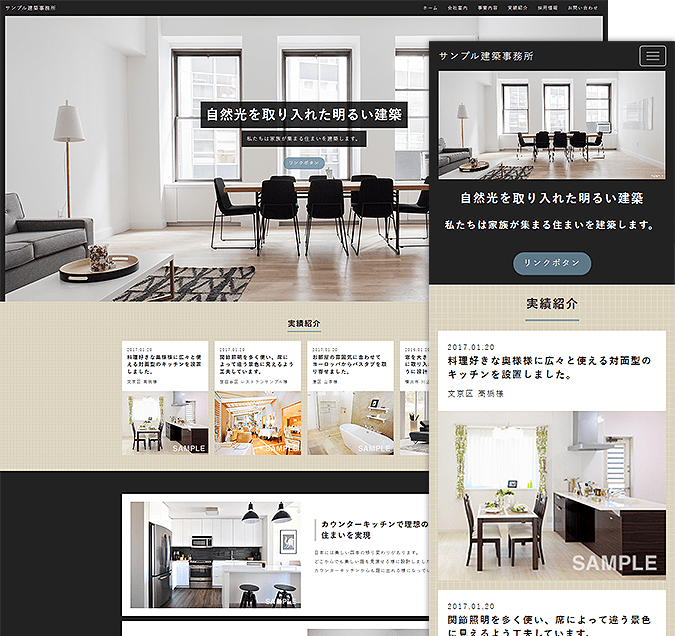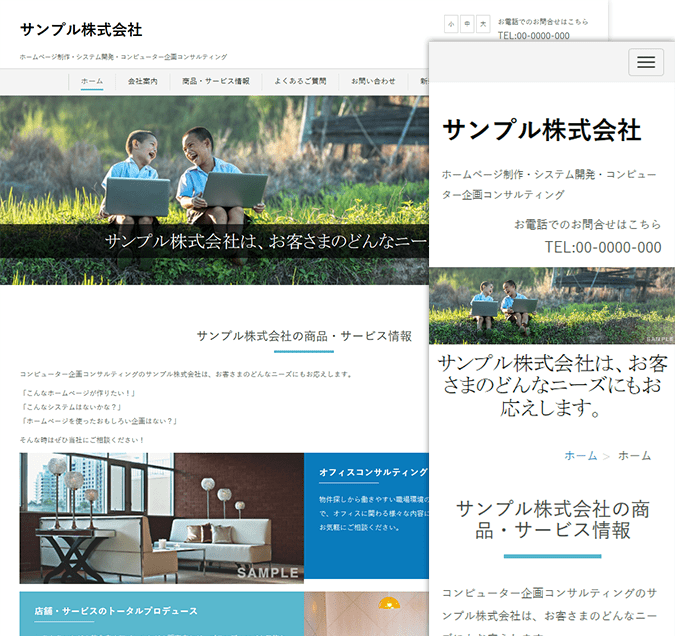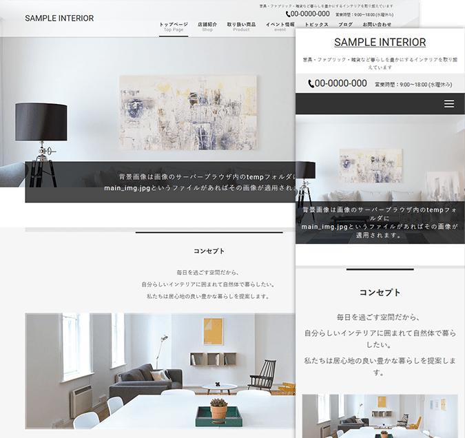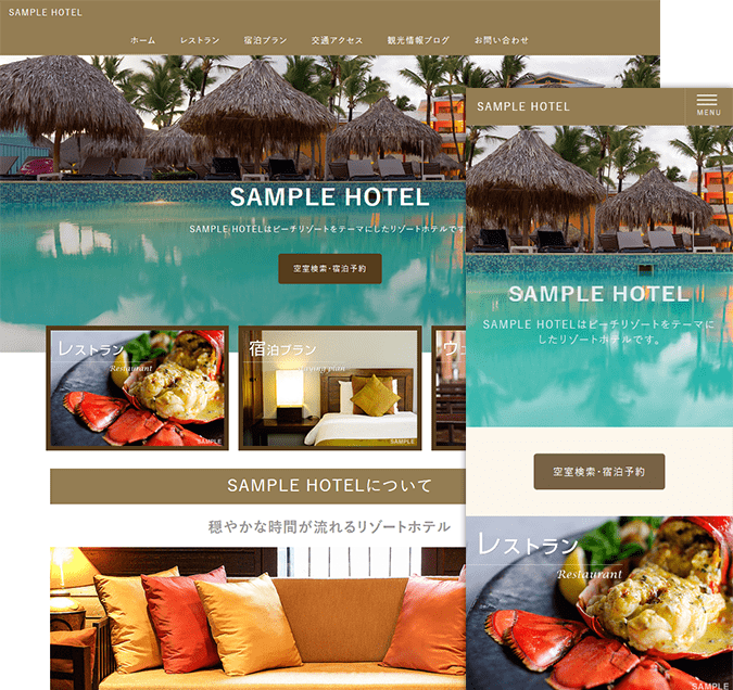 「ひかりweb」でホームページを作成すると、下記のような企業やお店のサイトを簡単に作成することができます。